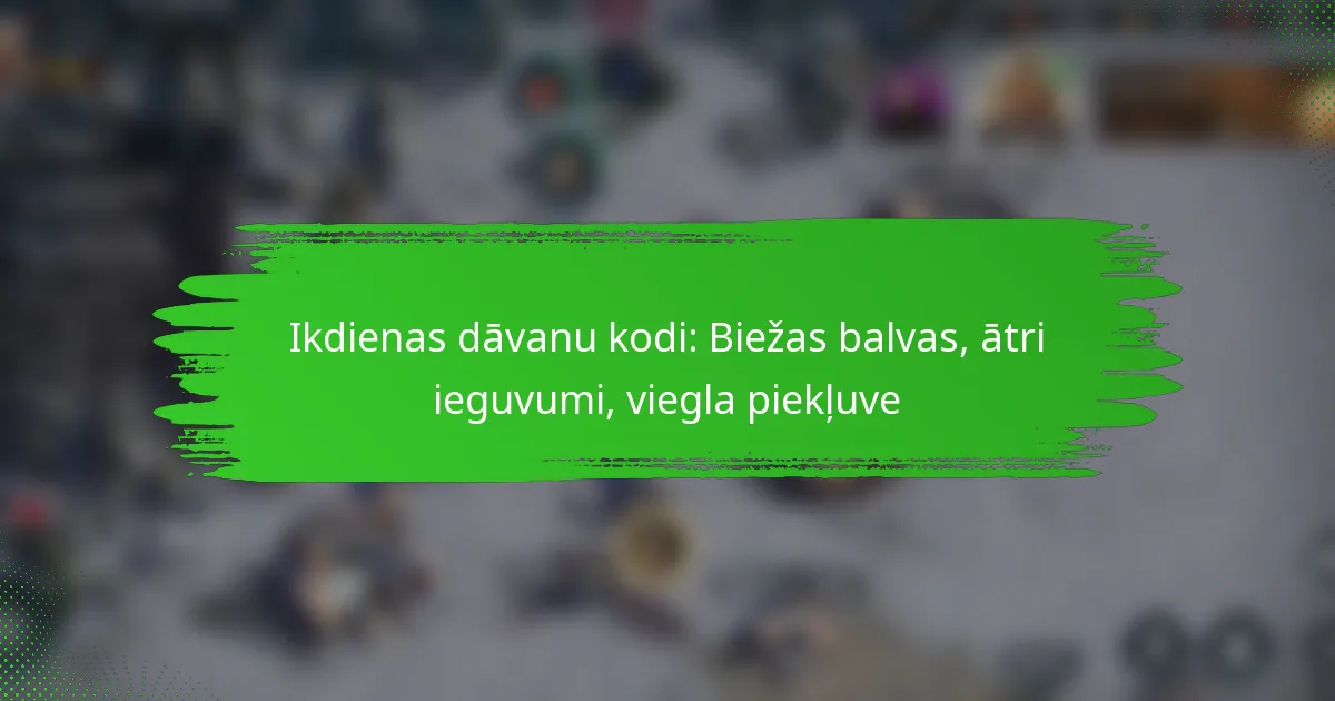 Ikdienas dāvanu kodi ir reklāmas kodi, kurus lietotāji var izmantot, lai saņemtu atlīdzību dažādās platformās, piedāvājot biežus stimulus, kas uzlabo kopējo pieredzi. Tos viegli iegūt